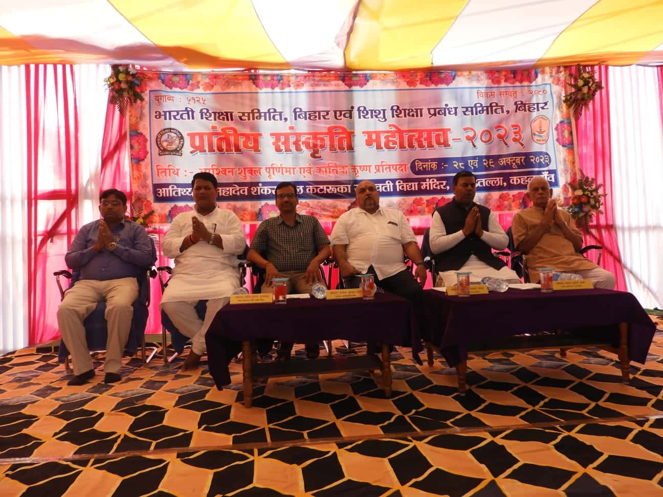 In the inaugural session of the Provincial Culture Mahotsav, Chief Guest General Manager NTPC Kahalgaon Mr. Narayan Prakash Shahar, Special Guest Sub-Divisional Officer Mr. Ashok Kumar Mandal, Chief Speaker Regional Secretary Mr. Nakul Kumar Sharma, Special Guest State Secretary Mr. Pradeep Kumar Kushwaha. |